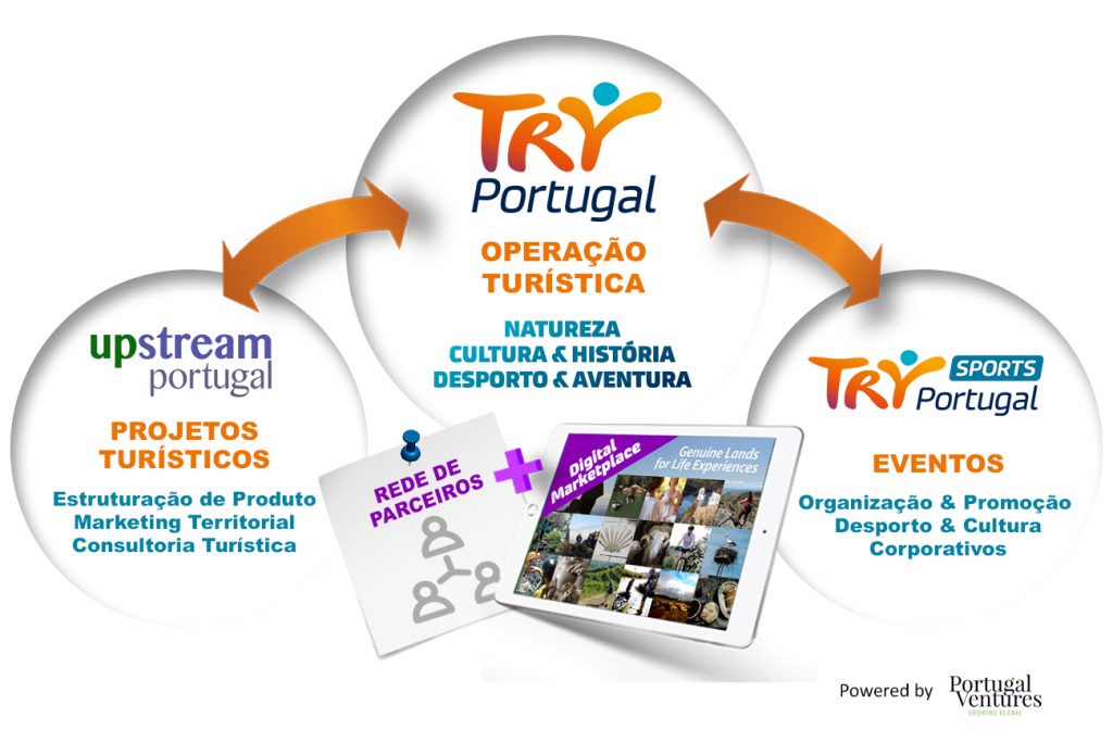 Desenvolve a sua atividade de Operador Turístico sob a marca TRY PORTUGAL e disponibiliza um marketplace digital, www.tryportugal.pt , o qual integra a maior oferta de experiências e atividades operadas por uma Rede qualificada de Parceiros de Animação Turística e de Hotelaria de todo o país, posicionando Portugal como destino de excelência para o Turismo de Natureza, Cultural e Desportivo, 365 dias no ano e em total segurança!